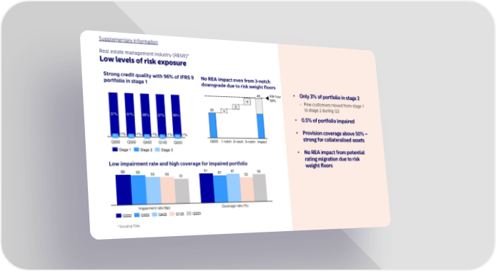 60 61 59 57 55 61 55 53 51 59 Impairment rate (bp) Coverage ratio (%) 1% 1% 1% 1% 1% 97% 97% 98% 97% 96% 3% 3% Q222 Q322 2% Q422 2% Q123 3% Q223 Stage 1 Stage 2 Stage 3 30 Impact Q223 8 1 - notch 5 2 - notch 6 3 - notch RW floor 50% 49 - Q222 Q322 Q123 Q422 Q223