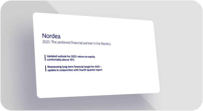 Nordea 2025: The preferred financial partner in the Nordics I Updated outlook for 2023: return on equity comfortably above 15% I Reassessing long-term financial target for 2025 - update in conjunction with fourth-quarter report